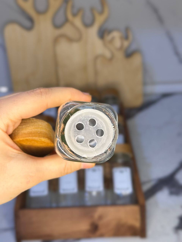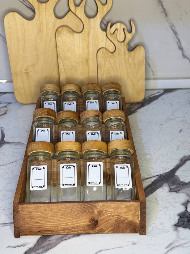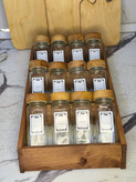 جا ادویه ۱۲تایی شیشه مک کارتی درب چوبی با استند نردبانی چوبی