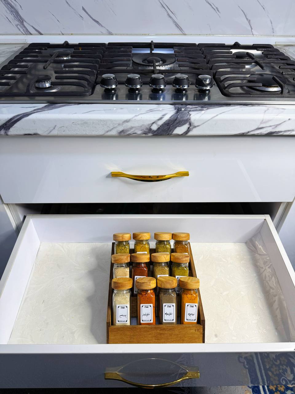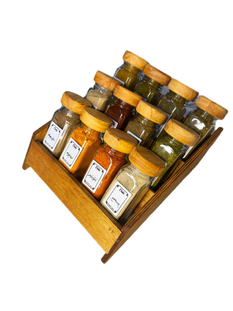 جا ادویه ی ۱۲ تایی درب چوبی با استند کشویی (با ادویه ی مرغوب اهواز)(ارسال رایگان)