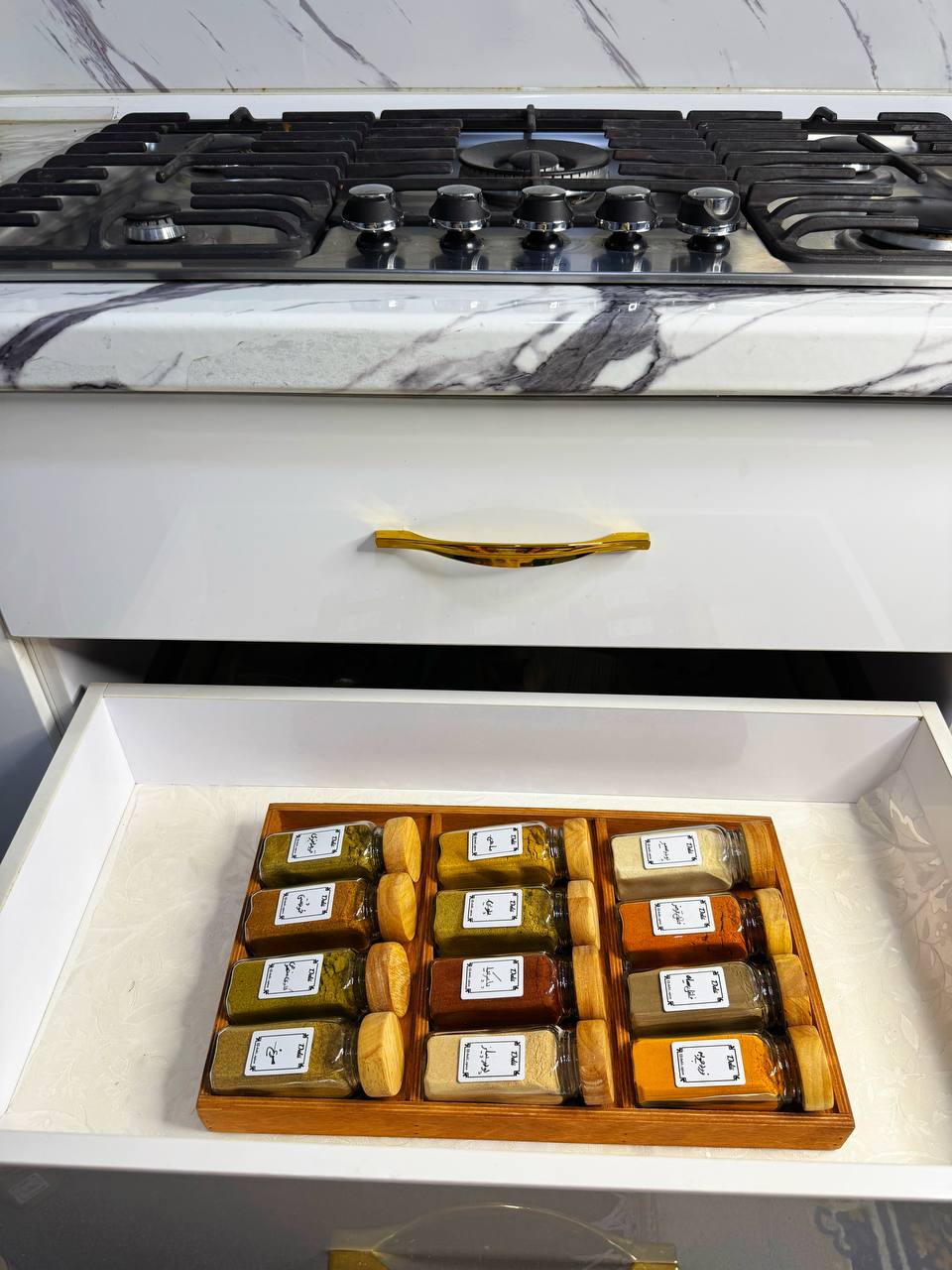 جا ادویه ی ۱۲ تایی درب چوبی با استند کشویی (با ادویه ی مرغوب اهواز)(ارسال رایگان)