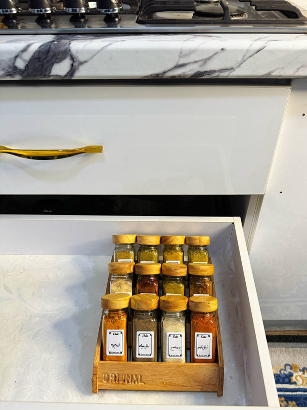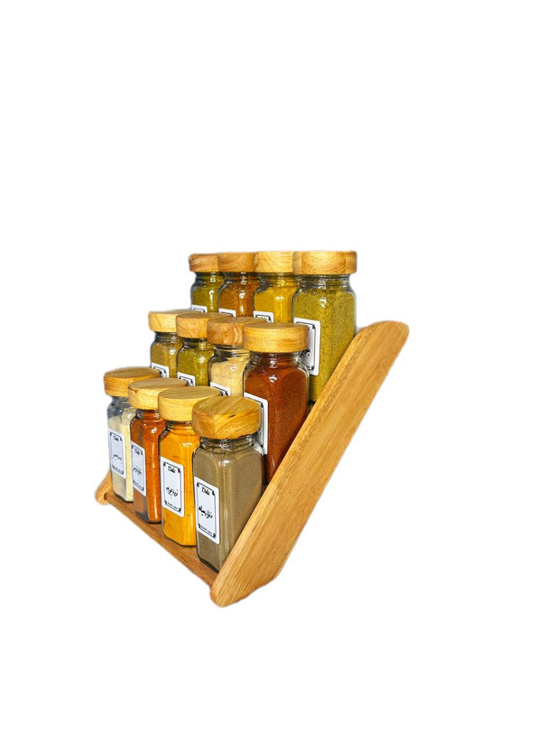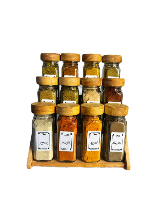 جا ادویه ی ۱۲ تایی درب چوبی با استند دو حالته (با ادویه ی مرغوب اهواز)(ارسال رایگان)