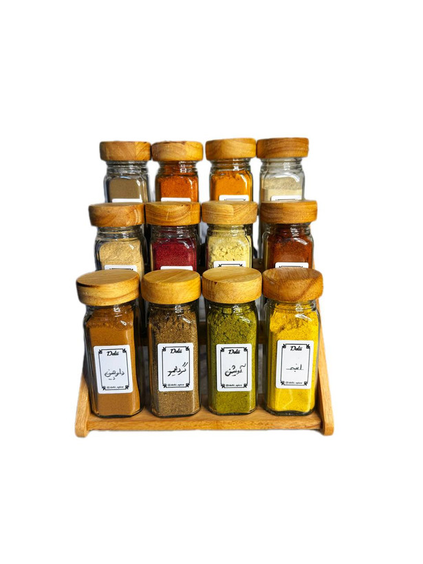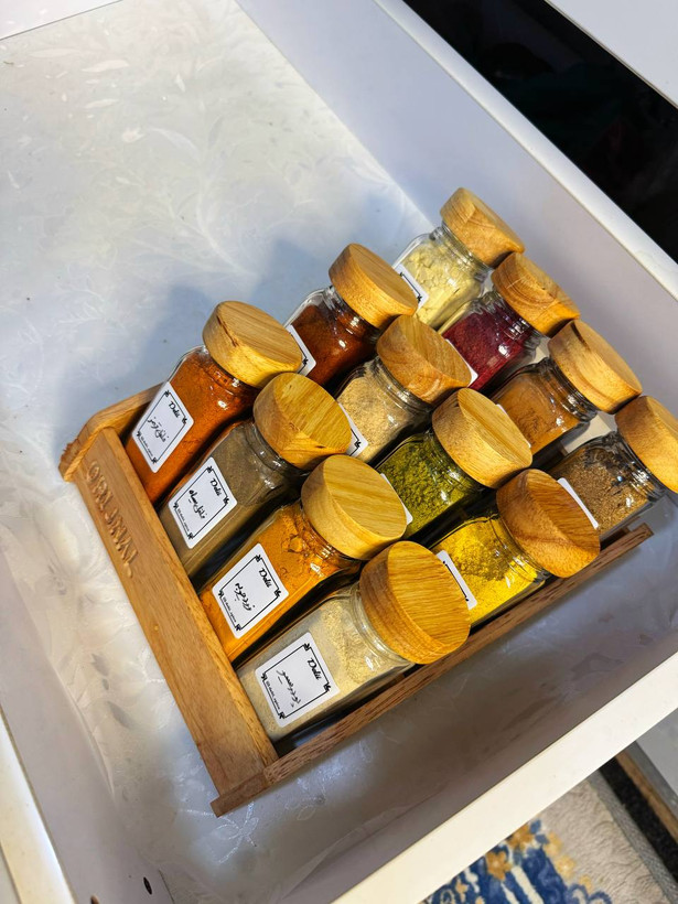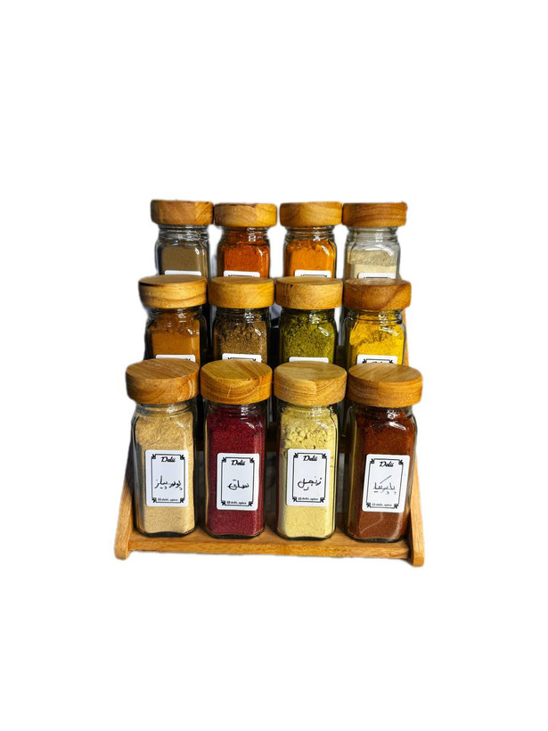 جا ادویه ی ۱۲ تایی درب چوبی با استند دو حالته (با ادویه ی مرغوب اهواز)(ارسال رایگان)