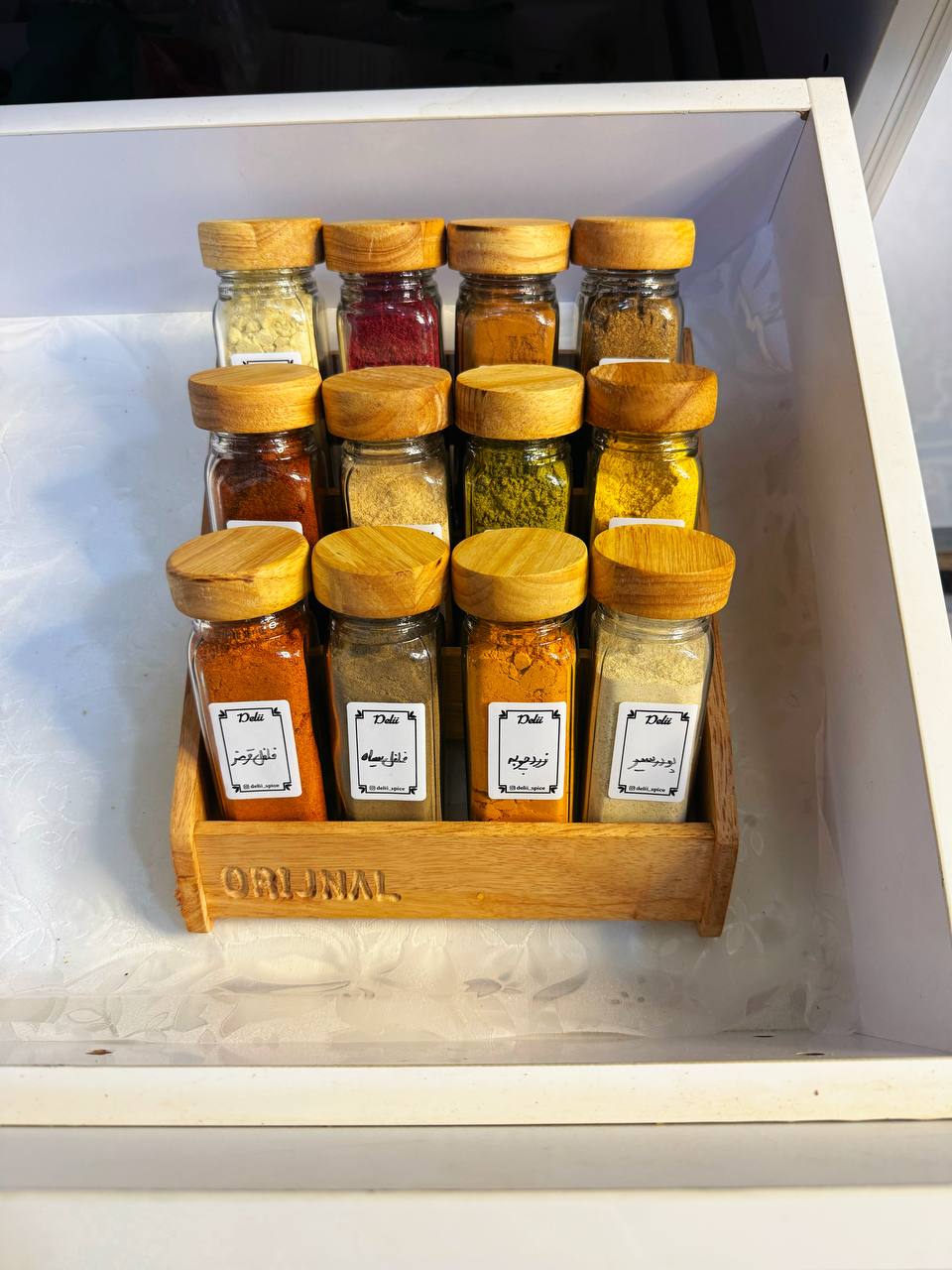 جا ادویه ی ۱۲ تایی درب چوبی با استند دو حالته (با ادویه ی مرغوب اهواز)(ارسال رایگان)