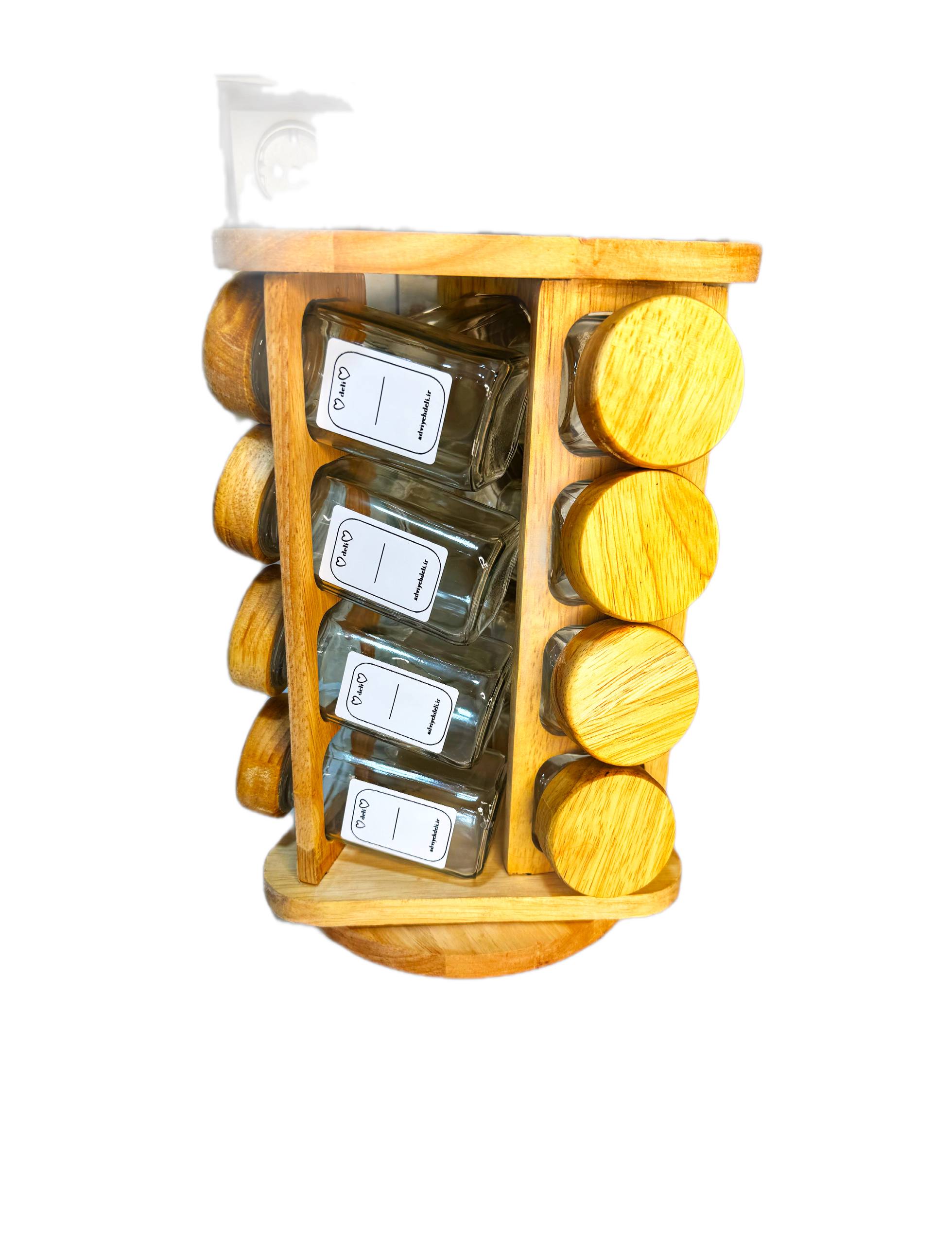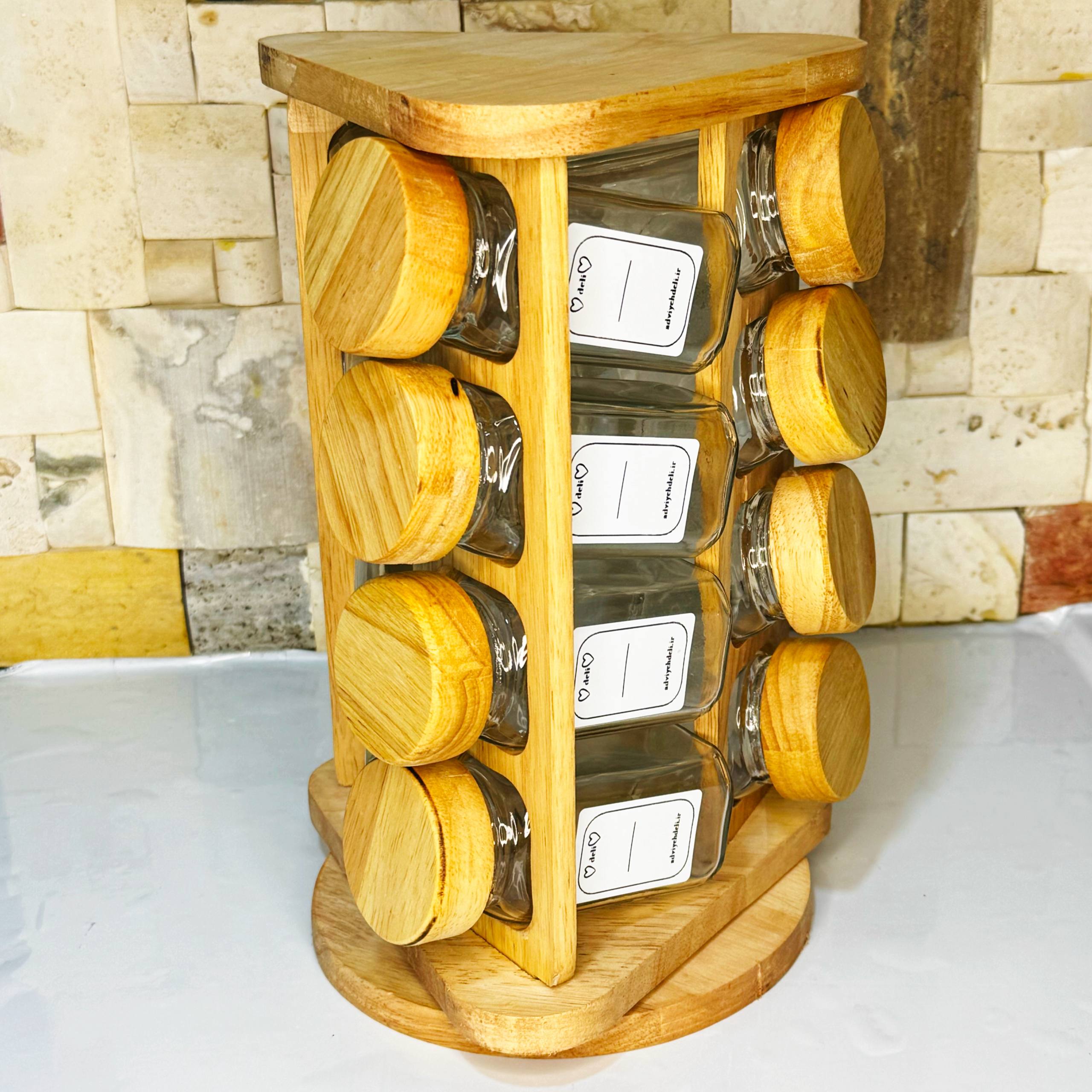 این ست شامل یک عدد استند چرخشی مثلثی چوبی رابروود و ۱۲عدد جاادویه درب چوبی ۱۰سانتی (داری سری نمکپاش و لیبل ضد آب) میباشد