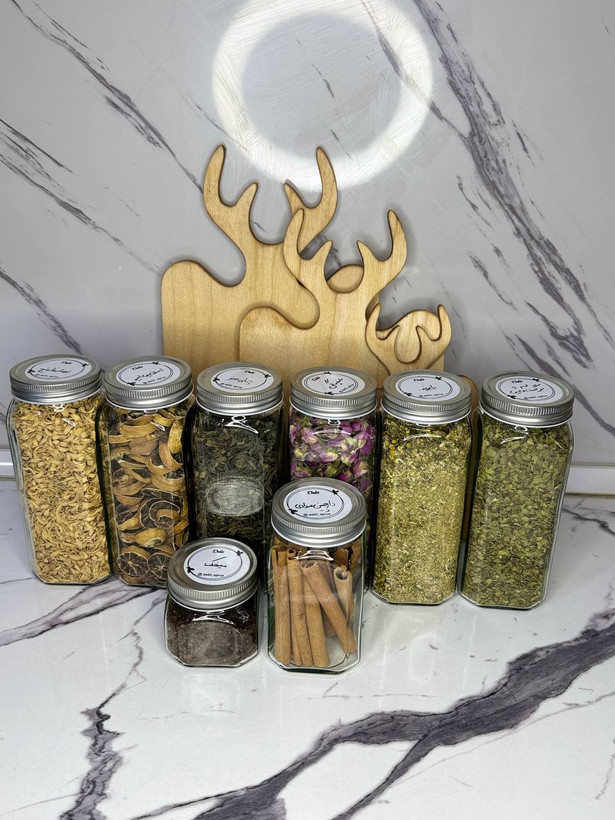 این پک هم بصورت شیشه ای (مقدار دمنوش موجود در هرشیشه۱۰۰گرم و مقدار میخک ۵۰گرم ) موجود هست