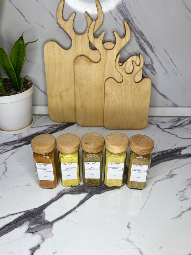 این پک هم بصورت شیشه ای درب چوبی (دارای سری ادویه پاش)